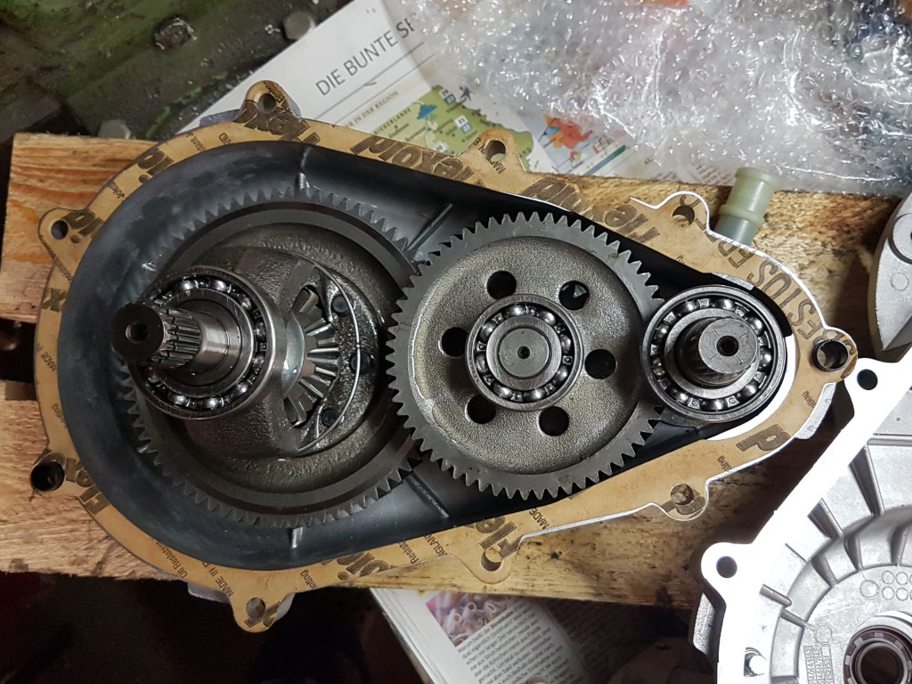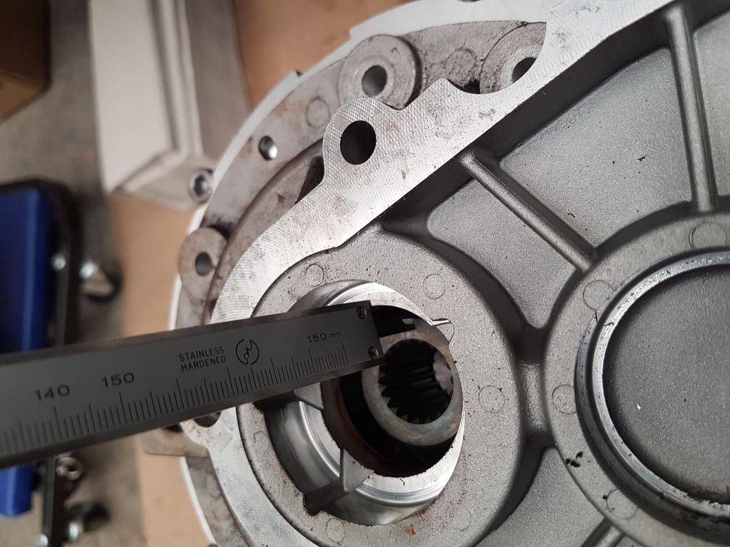 Die Tiefe vom Lagersitz der Getriebeantriebswelle (Außenanschlag) zur Stirnfläche der Zahnbuchse (s.o.) beträgt 16mm. Vielleicht hilft das ja jemandem bei späteren Konstruktionen.
