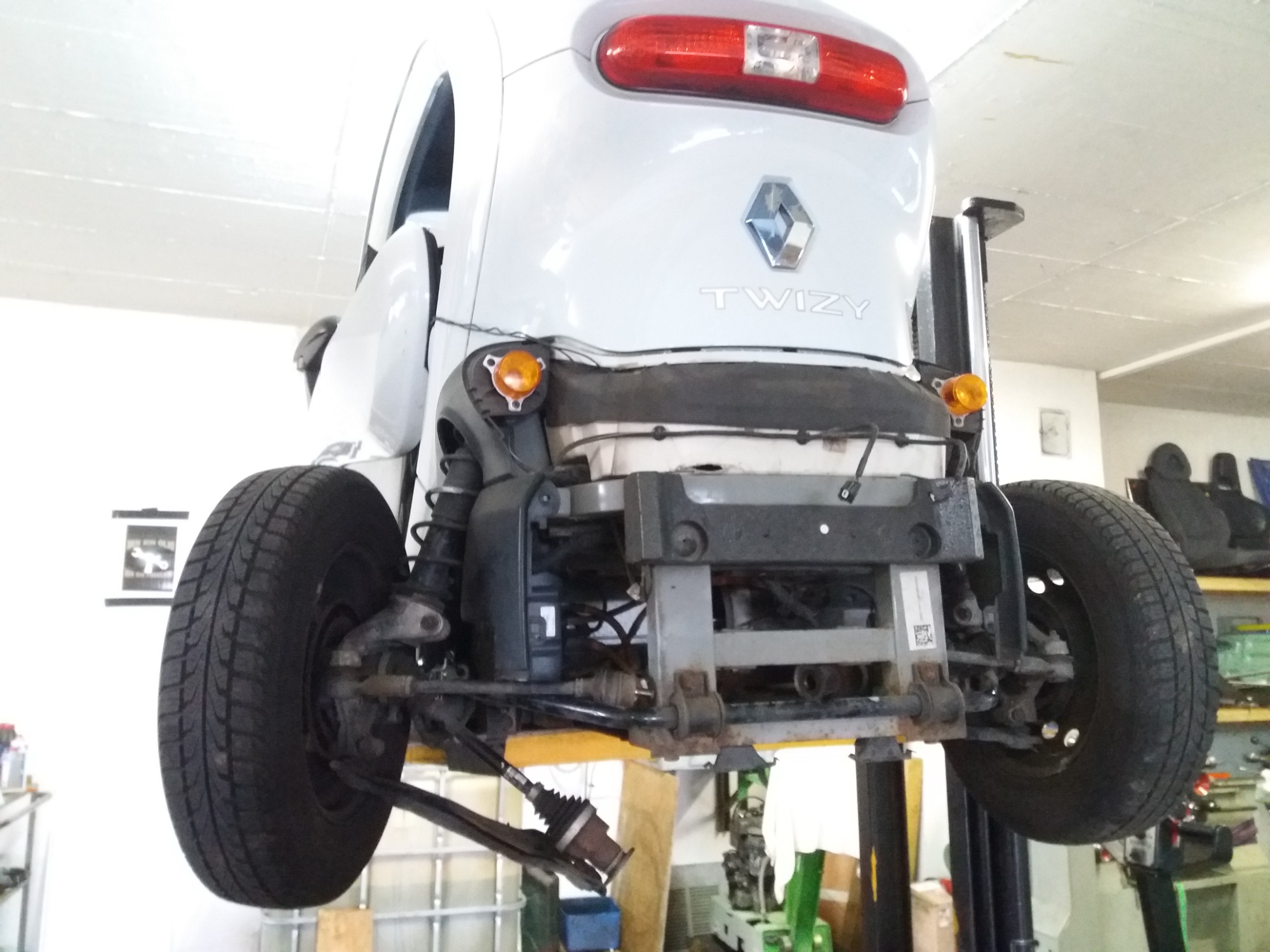 Habe für den Twizy bei eb…. Für nicht ganz hundert Euro eine „atv-Hebebühne“ gekauft, da kann man wunderbar mit arbeiten.