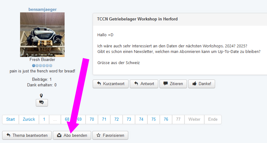 Frage wann findet dieses Jahr ein Getriebelager Workshop statt. Du hast mich ja letztes Jahr vorgemerkt.