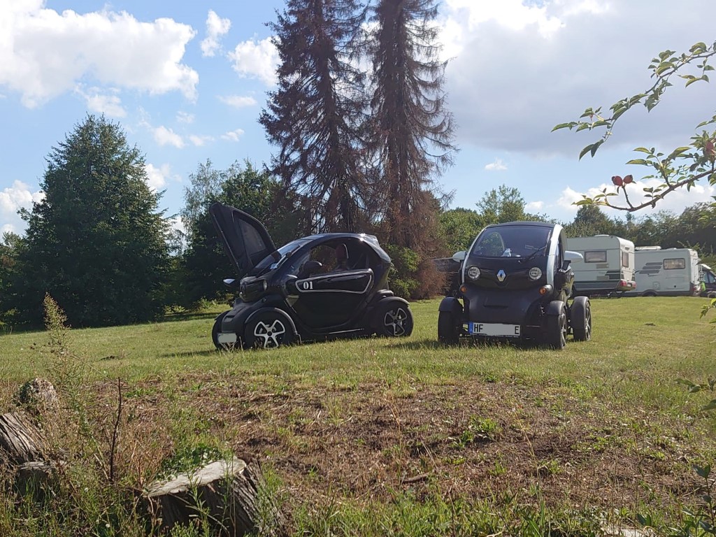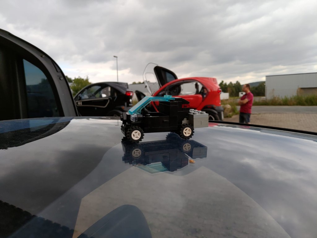 Entspannte Atmosphäre, lauter kompetente, freundliche und lustige Leute, alles geht Hand in Hand, und ehe man sich's versieht, ist der Twizy schon fertig. Runter vom Stapler, Zündung an, auf GO, Rückwärtsgang rein, auf's Pedal und ohne Klonk raus aus der Halle! Proberunde gedreht, reueloses Segeln geht jetzt, alles fühlt sich an wie neu, wer aus der Maschinenbau-Ecke kommt, der kennt den Begriff "schmatzend-saugend", so fühlt sich der Antriebsstrang jetzt an. In meinen Augen ist das die beste mechanische Modifikation, die man am Twizy machen kann.