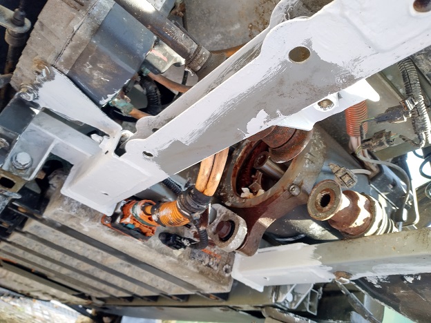 Erst abkratzen, Phosphorsäure, dann meine Reste 2K Grundierung, am Ende noch Wachs drüber. Besser als nix