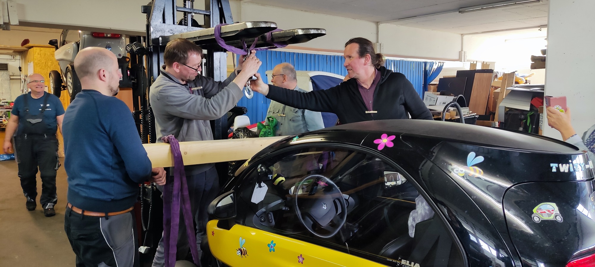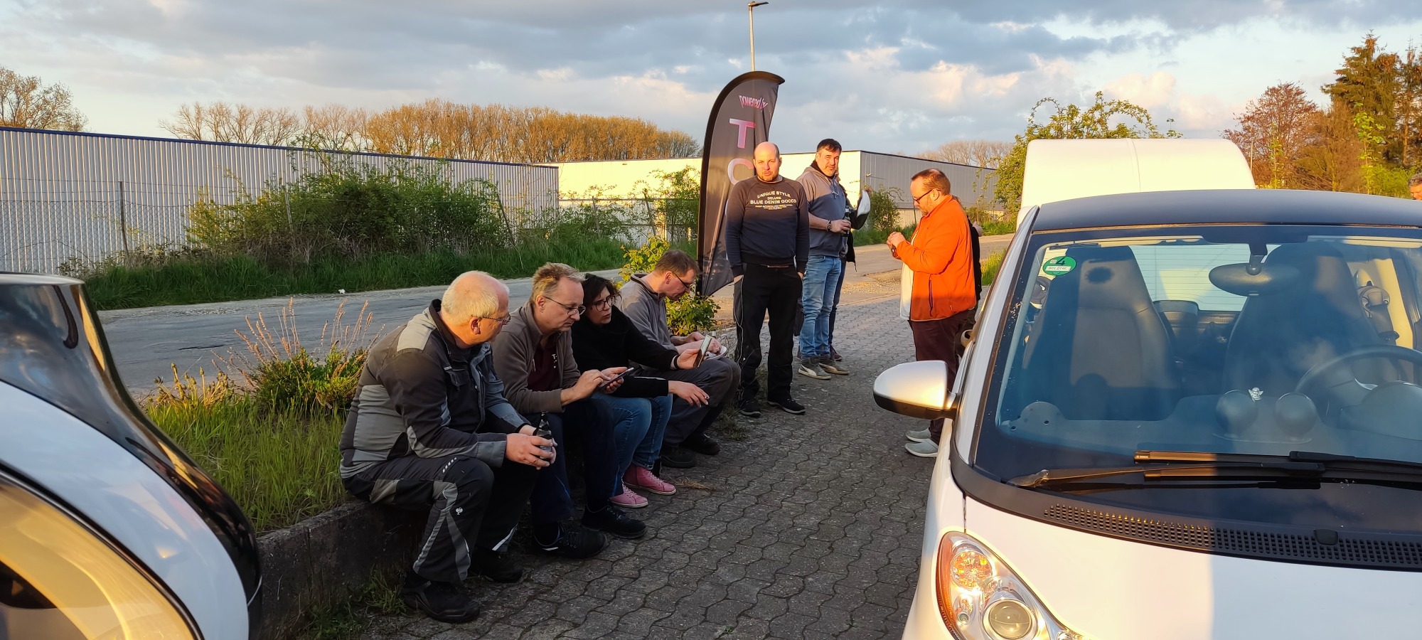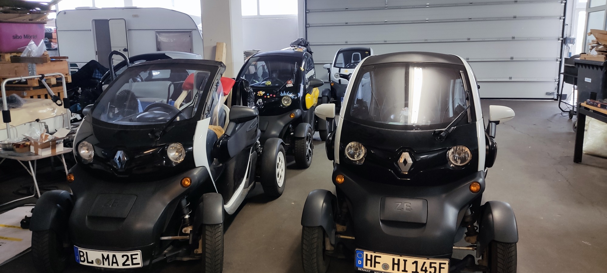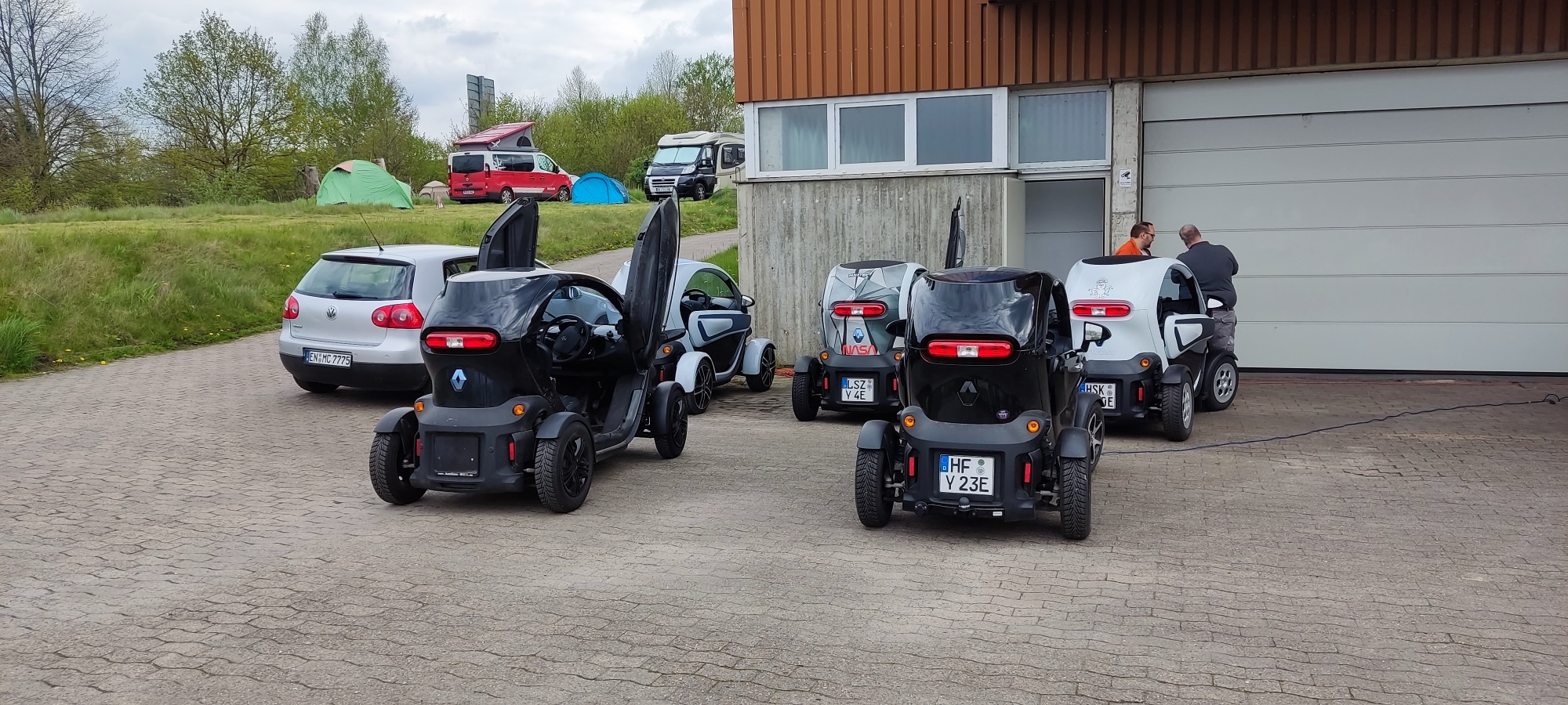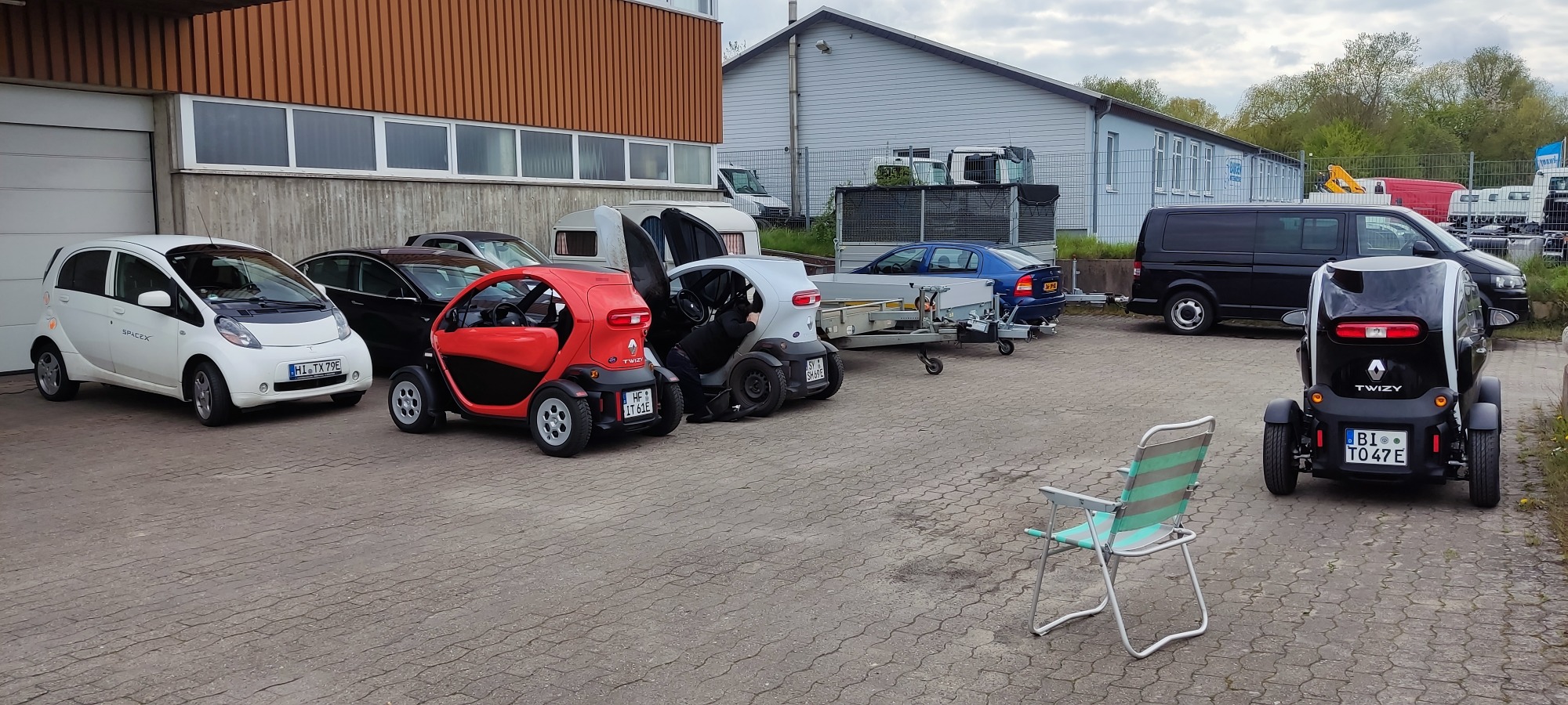 Eingeplant für das Wochenende waren 13 Twizys, einer musste absagen, dafür kam noch einer aus der TTHF-Gruppe – passte also. Dazu noch drei geschickte und ein gebrachtes Getriebe.