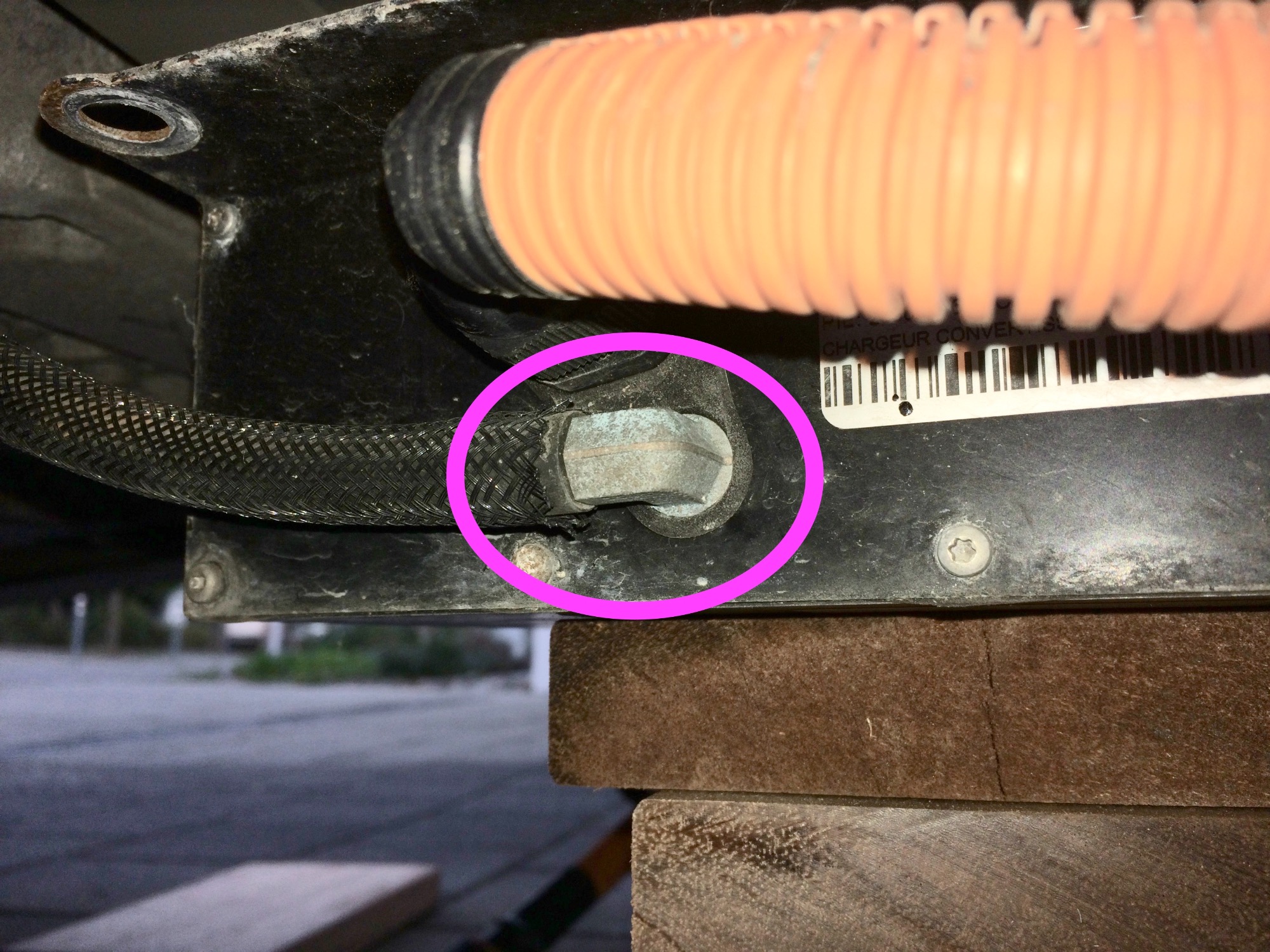 Datt iss nur ein Entlüftungsschlauch. Abziehen oder zur Not auch knapp nach dem Anschlusswinkelstück abschneiden. Der steckt nur oben irgendwo neben/über der Akkubox.