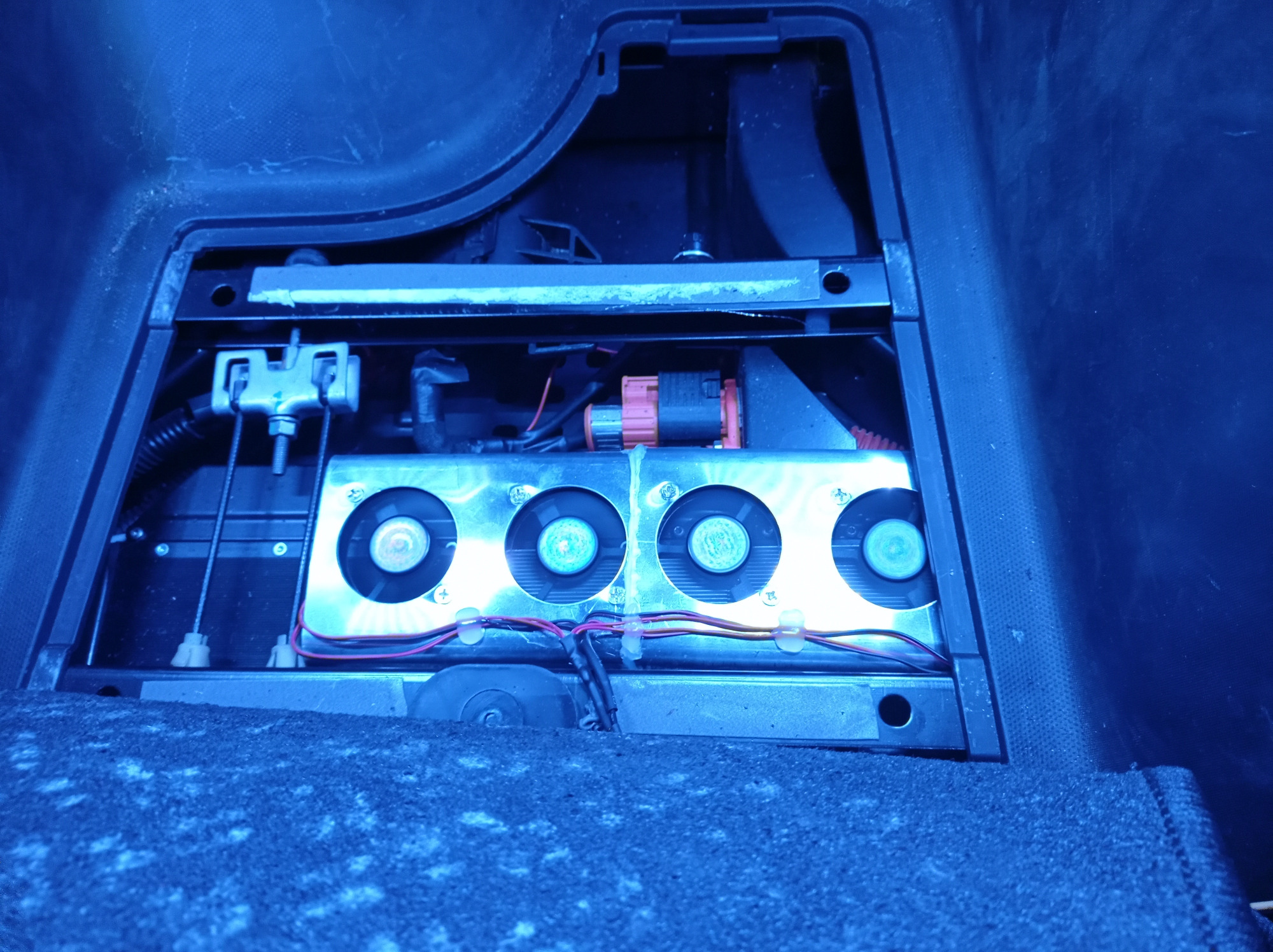Auf dem Foto sind die Lüfter noch zu weit links, zu nah am Handbremskabel. Die Kabelführung ist bei dem Test auch noch nicht fertig,..nur falls das jemandem auffällt