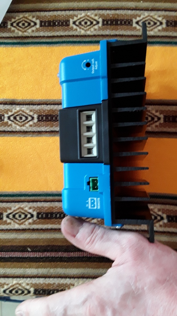 Versorgungsspannung greif ich im Lader ab, das originale 12V Verbindungskabel wird ausgebaut und am Victron angeschlossen, durch die freie Durchführung geht das neue Kabel vom Victron auf die Fahrakku-ladeanschlüsse innerhalb des Laders. Ob die Federklemnen den Querschnitt können muss ich testen. 6quadrat solls schon sein. Falls nicht löt ich die Leiter auf und anstelle der obsoleten 12V Klemme passt dann auch ein Sicherungshalter ins Ladergehäuse.