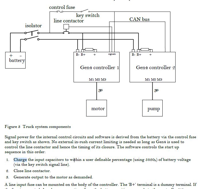 kann sein, daß da noch im sevcon eine verbindung fehlt welche (wahrscheinlich über einen Widerstand) eine Kondensator auflädt, an dess spannung das Sevcon erkennt "ja, Batteriespannung ist da, nun kann es los gehen.