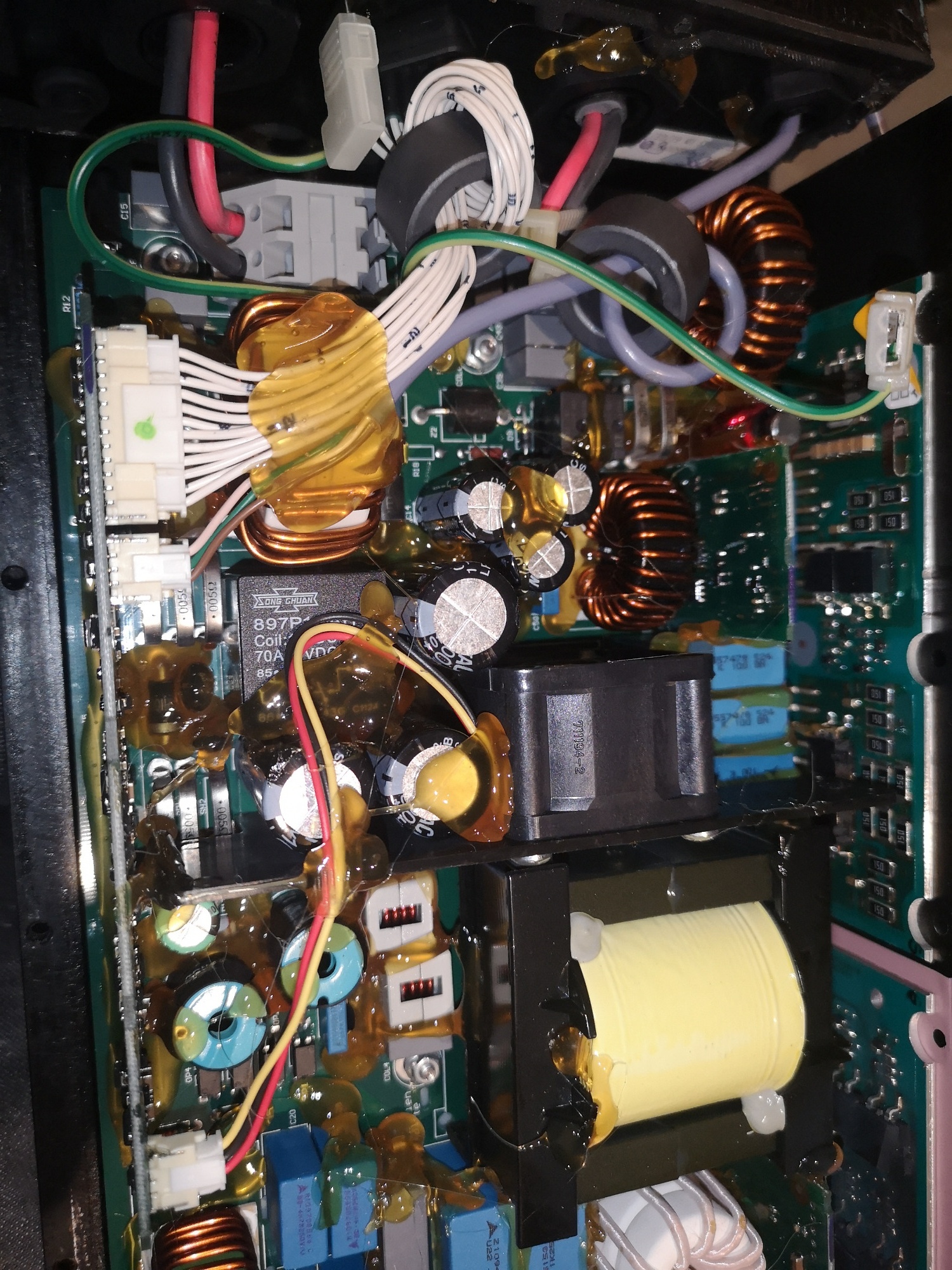 Wenn die Leistungstransistoren durchbrennen passiert was wegen Alterung oder weil die Treiber defekt sind und die Transistoren grillen. Ich hoffe dass es in meinem Fall ersteres ist, sonst wird die Reparatur aufwändiger und ich werde ein paar der MOSFETs durchheizen müssen.