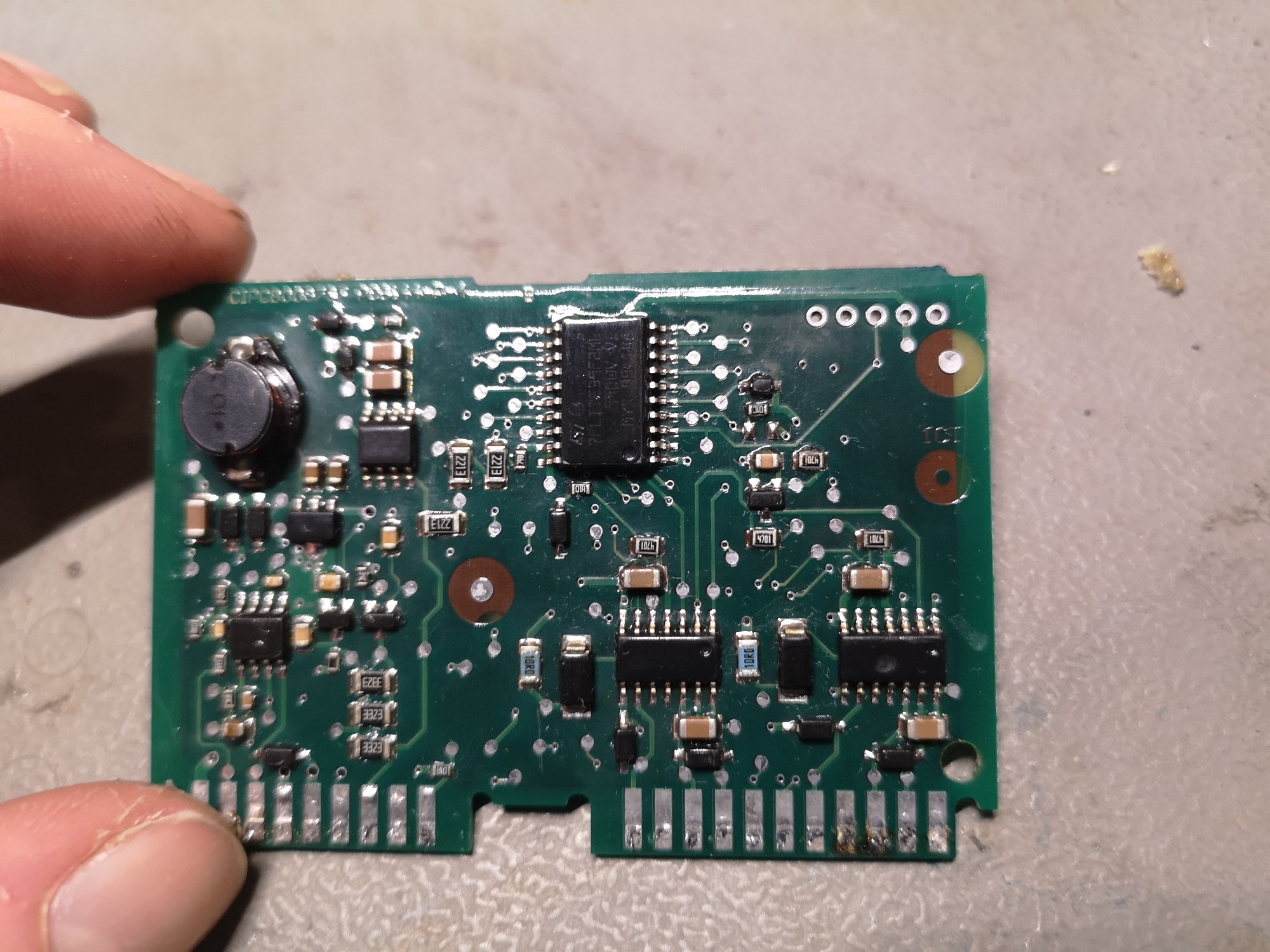 Nach der Reinigung schaut die gegenüberliegende PCB wieder glücklich, ob der IC schaden genommen hat, kann ich nicht sagen. Das wird sich zeigen, wenn ich das Netzteil teste.