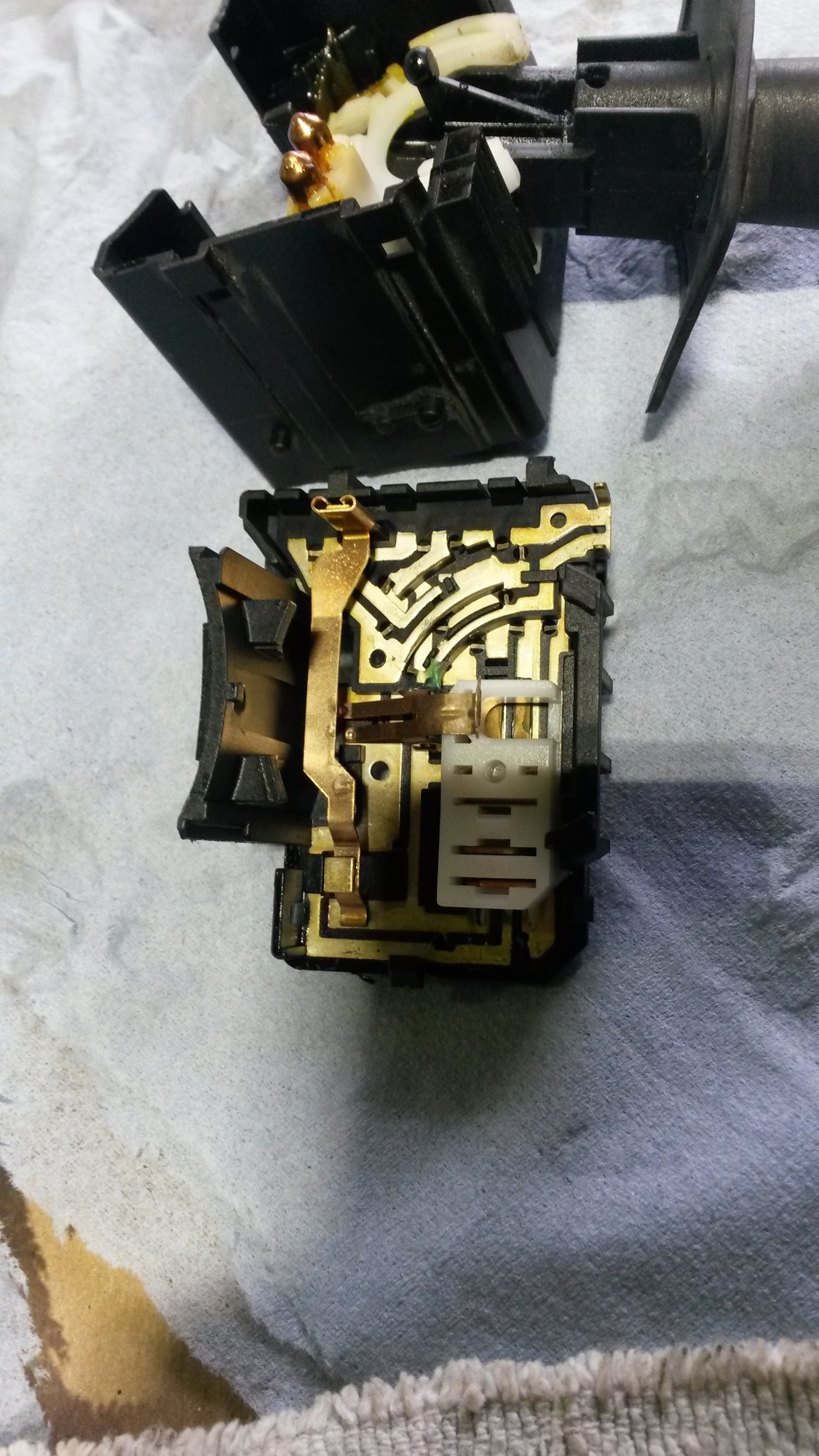 Da die abgebrochenen Hupenkabel faktisch nicht professionell löt/instandsetzbar sind überlege ich notfalls mal so einen Hebel zu bestellen und einfach den Hebel ohne das Zentralteil auszutauschen und die Kabel des neuen Hebels am alten Zentralteil zu verlöten. An dem Ende kommt man ja ganz passabel hin. Dort wo sie brechen kann man sie zwar für den TÜV funktionsfähig zusammenbrutzeln, aber eine dauerhaft funktionsfähige Lösung ist das fast sicher nicht