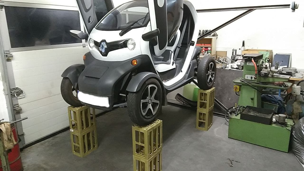 Das ganze ist mobil, beansprucht also nicht permanent Platz, sondern nur wenn der Twizy aufgebockt wäre.