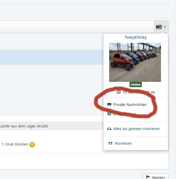 wende dich per PN an Plumpi www.twizy-forum.de/forum/profile/15794-plumpiDitz schrieb: Guten Tag