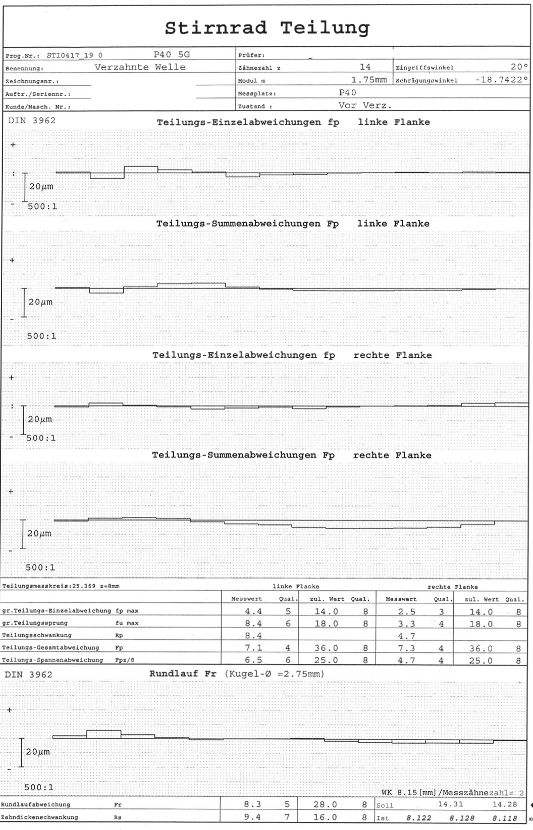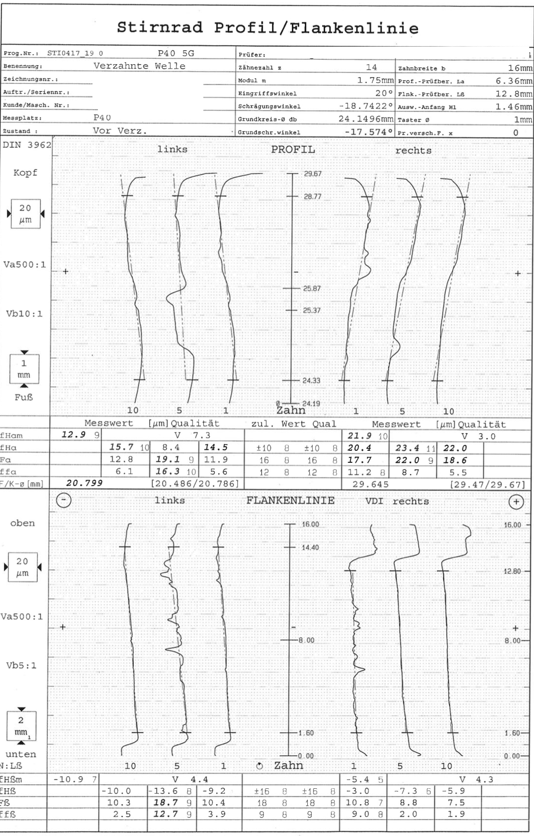 und so sieht ein Meßprotokoll der Schrägverzahnung aus (Musterwelle zum Erfasse der Verzahnung)