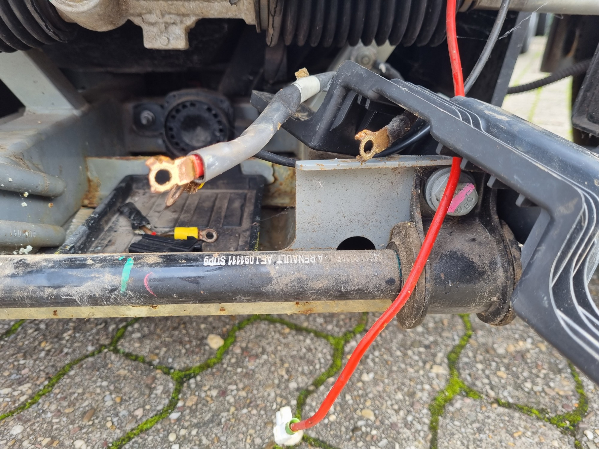 Zum Ausbauen der Batterie war der Aufwand eindeutig übertrieben. Wenn auch noch das Kabel ausgetauscht werden muss, wird man sich eventuell etwas mehr Platz schaffen müssen. Wofür ist das dünne rote Kabel mit der Lüsterklemme? Solche Bastelarbeiten könnten von mir sein, aber die Fachwerkstatt müsste das wohl besser hinbekommen.
