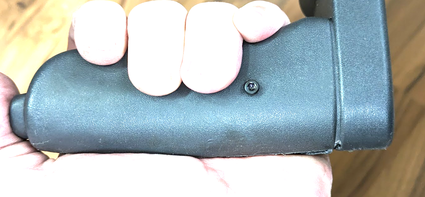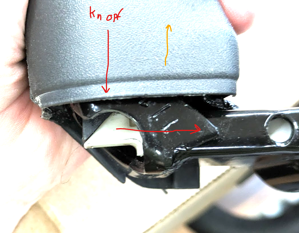 Damit man den Griff wieder auf das Metall bekommt muss Schraub 1 tiefer eingeschraubt werden. Bei mir hat sie dann den Knopf blockiert, aber das ist erstmal OK.