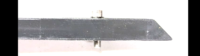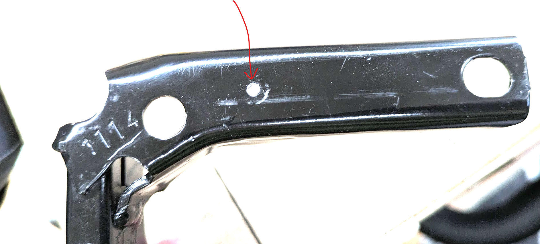 Der rechte Pfeil zeigt wo das Loch für die 1. Schraube gebohrt werden sollte