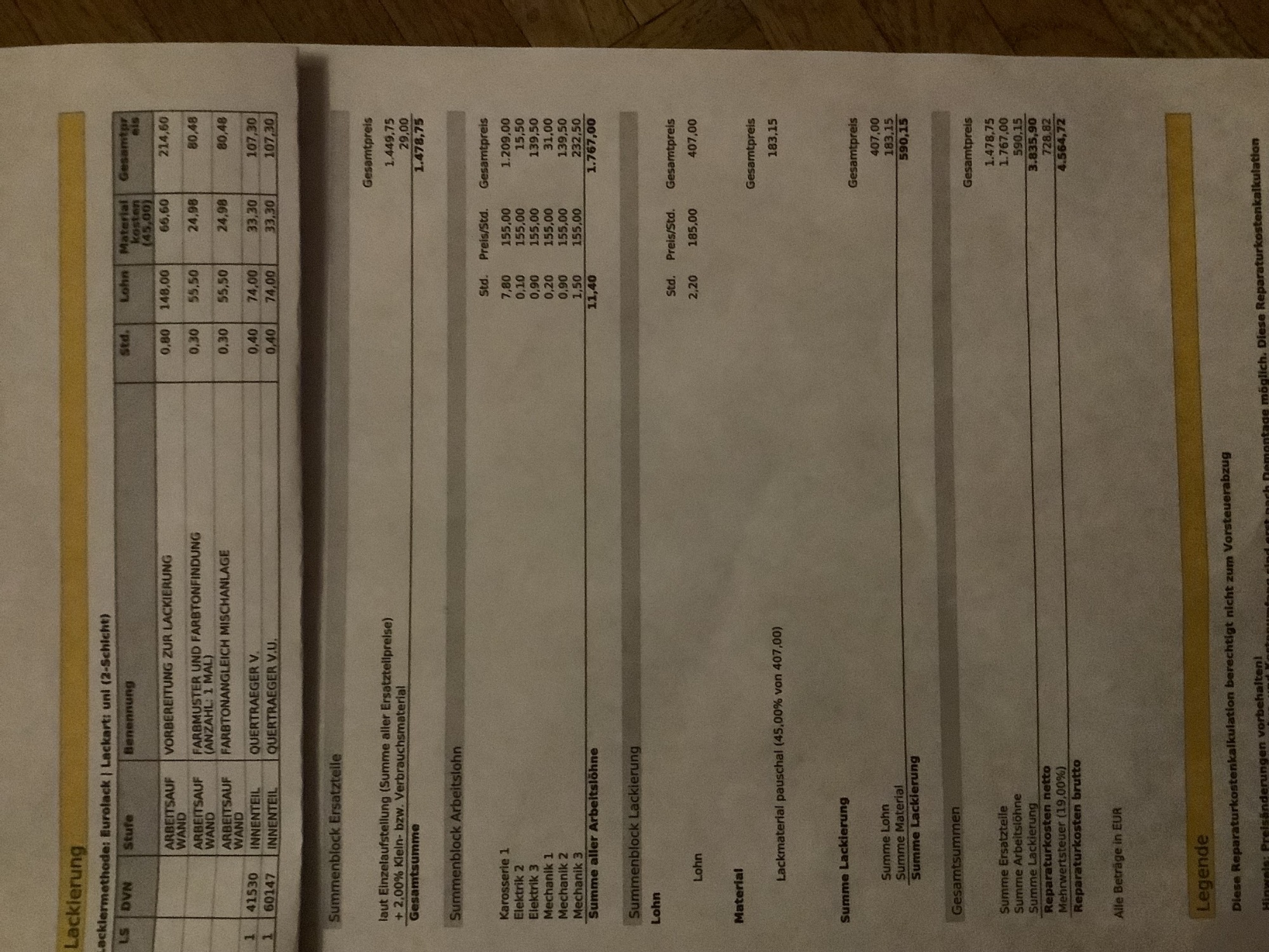 Zum Vergleich.. die Reparatur meines Frontremplers am Yps kostete 4800€, Teile waren