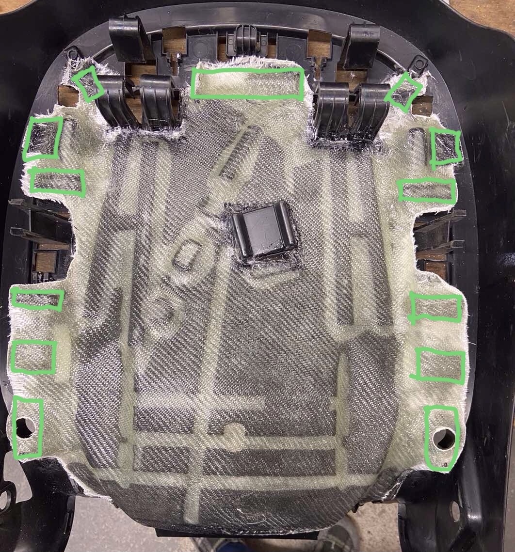 Ein Problem mit der gezeigten Glasfasermethode ist, dass auch viele Harze an ABS-PC nicht gut haften. Die härten aus und alles sieht schick aus, aber bei Verformungen des ABS-PC (z.b. jemand setzt sich auf den Sitz) platzen dann die Glasfaserschichten incl. gehärtetem Harz als Ganzes ab.