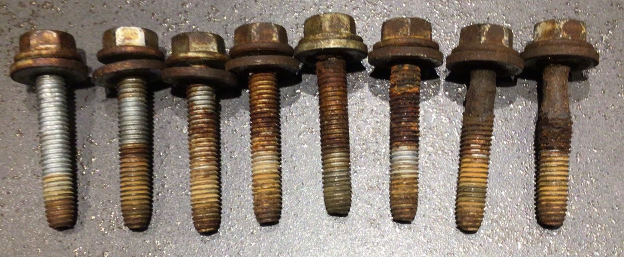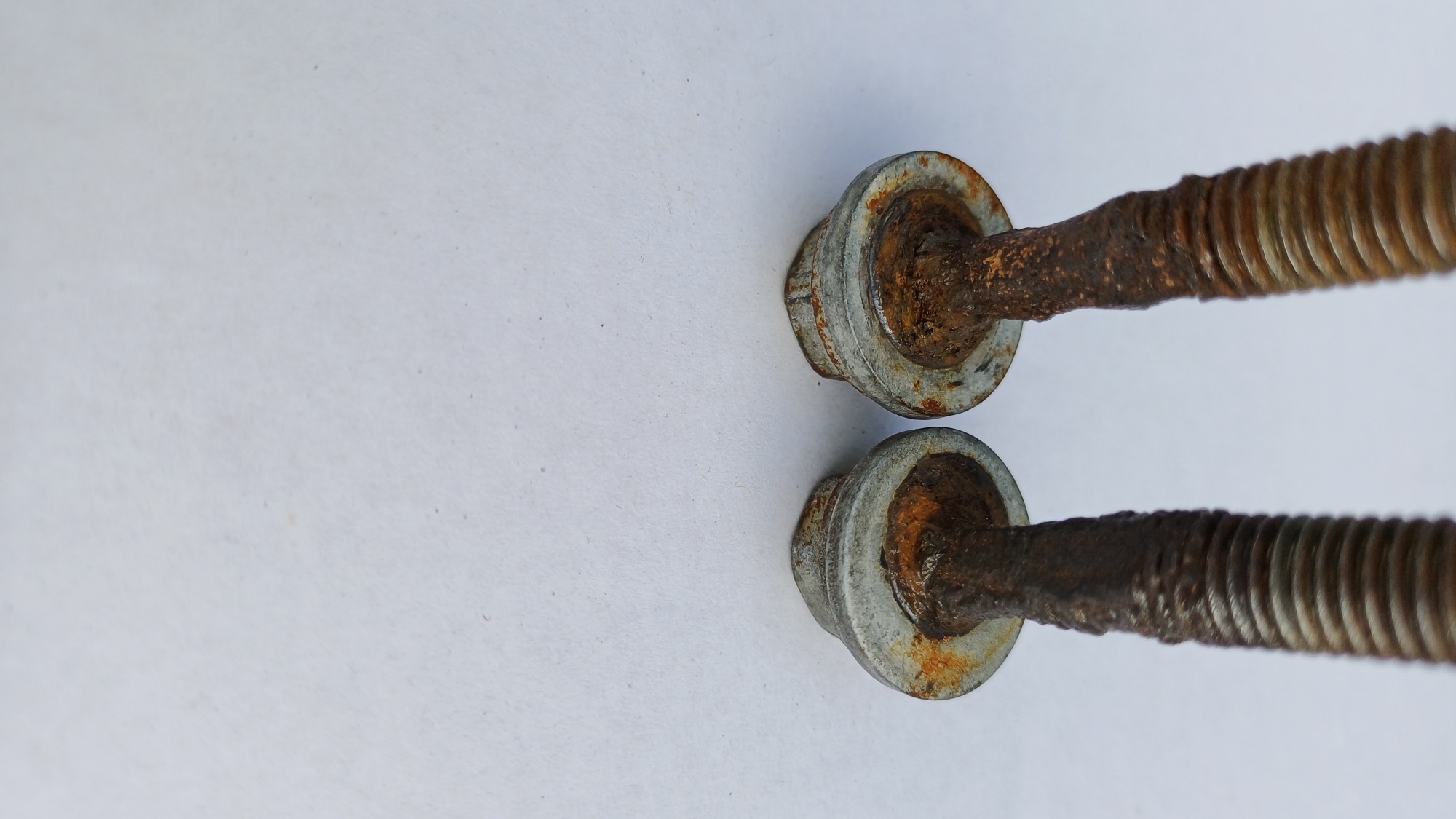 Die Schrauben sehen so aus, weil die Bohrung der Streben mit Wasser voll läuft und das dort "gährt". Sollte man mal tauschen.. solche Expemplare hatte ich auch schon ein paar mal. Deshalb mache ich immer ne gute Schippe "Mike Sanders Karosseriefett" auf die Schrauben beim Wiedereinsetzen.