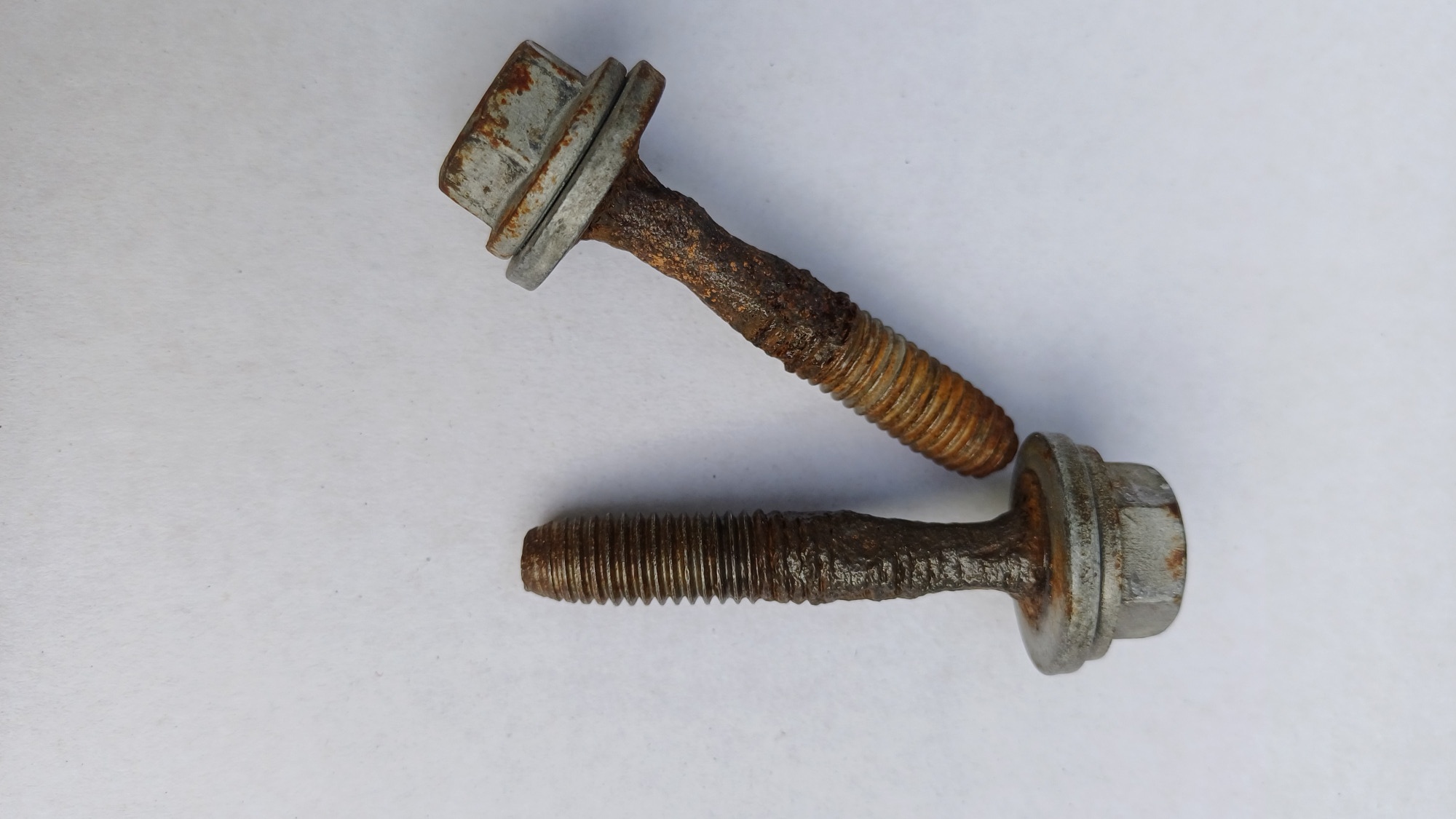SO! sehen normal die beiden Schrauben aus, mit denen der Hilfsrahmen befestigt ist. Bei Akkus hatte ich so krasse Blindgänger noch nicht.