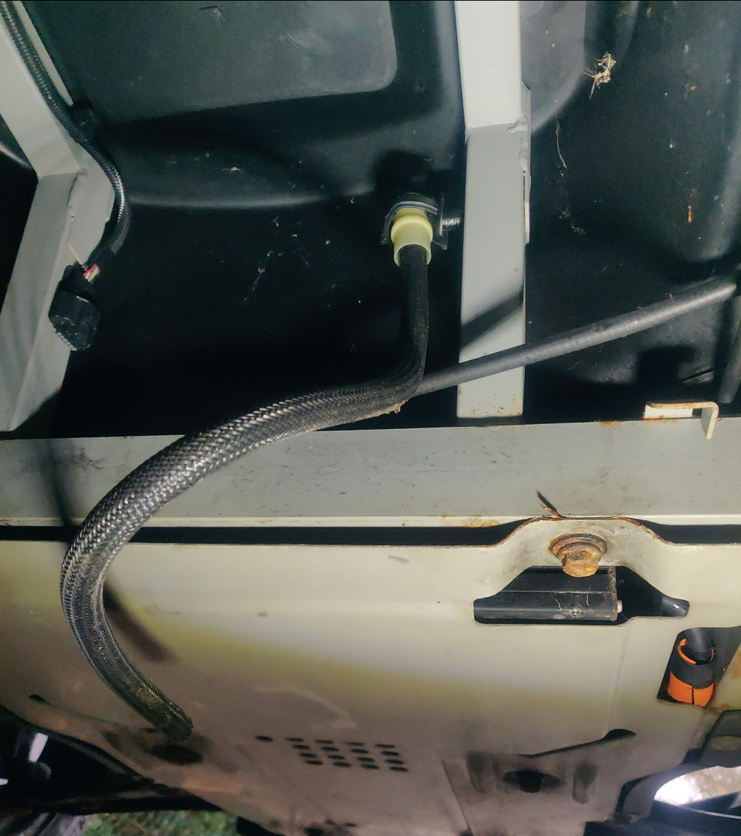 Wichtig: Das ist nicht die Getriebeentlüftung hinten, sondern dieser Schlauch müsste irgendwo vorne im Twizy angeschlossen sein.