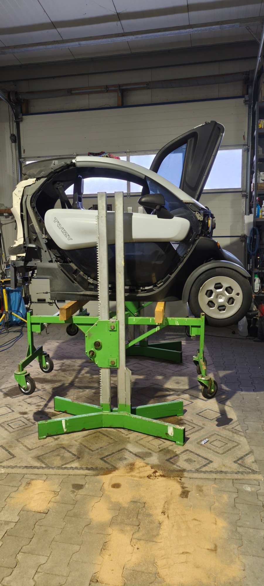 Und wie kriegt man den Twizy ohne Stapler auf die beiden Kanthölzer in geschätzt 50 cm Höhe wenn die Lifte komplett abgesenkt sind?