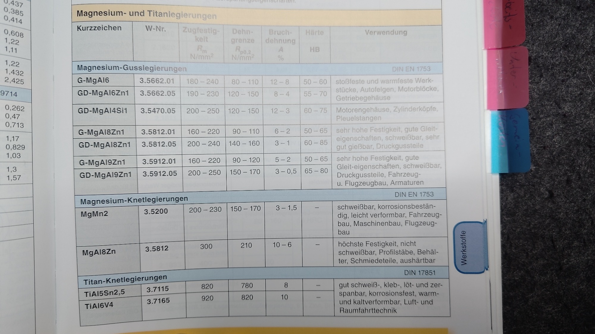 Hier mal Auszüge aus der Bibel (Tabellenbuch Metalltechnik, Christiani):