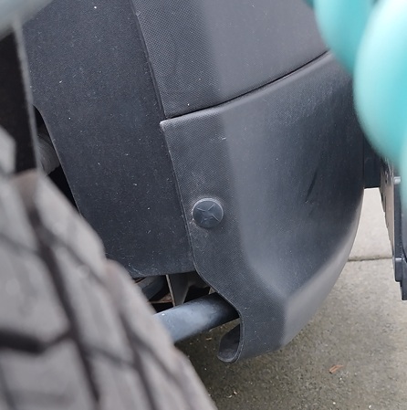 Das ist die Verkleidung vor der 12V-Batterie bzw. wo das Nummernschild befestigt ist.