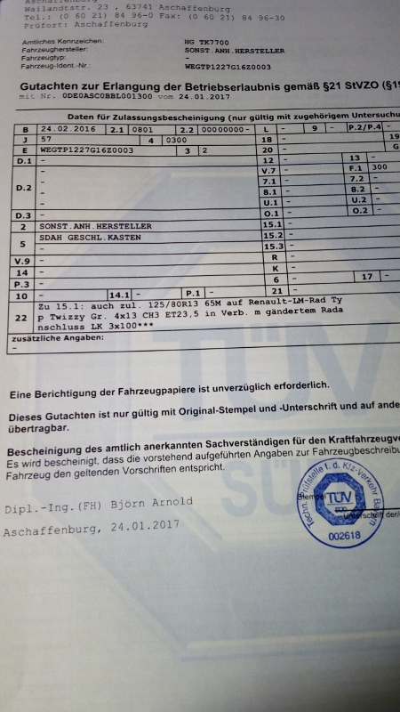 Sind problemlos eingetragen worden, muß noch zur Zulassungsstelle.