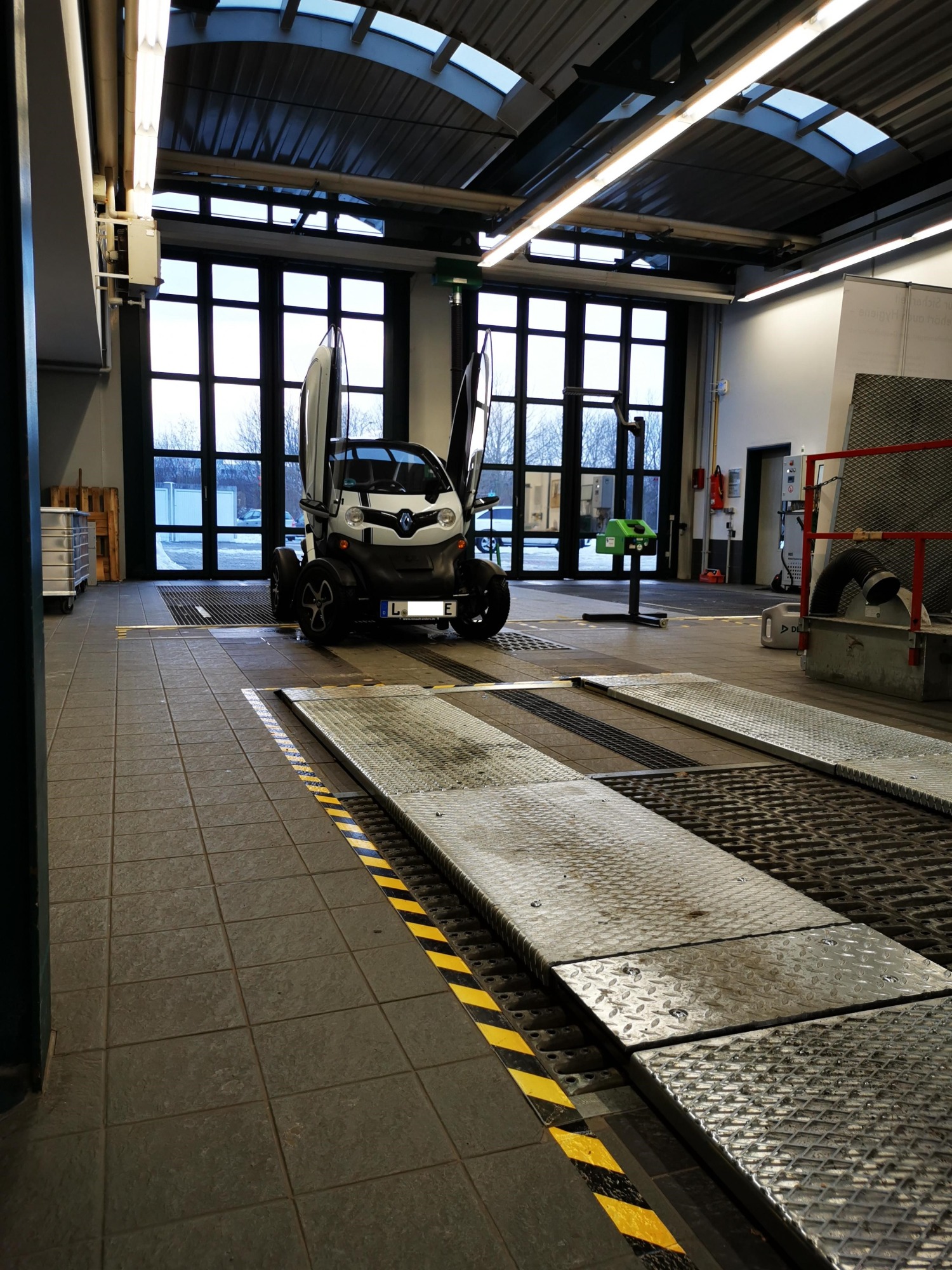 Und haben einen Rollenprüfstand, wo der Twizy draufpasst.