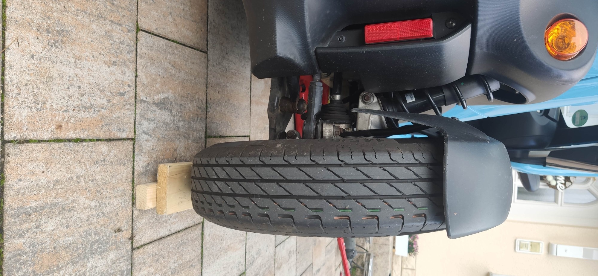 Ich glaube mich zu erinnern, daß es hier Twizys mit so breiten Reifen hinten auf original Felgen gibt.