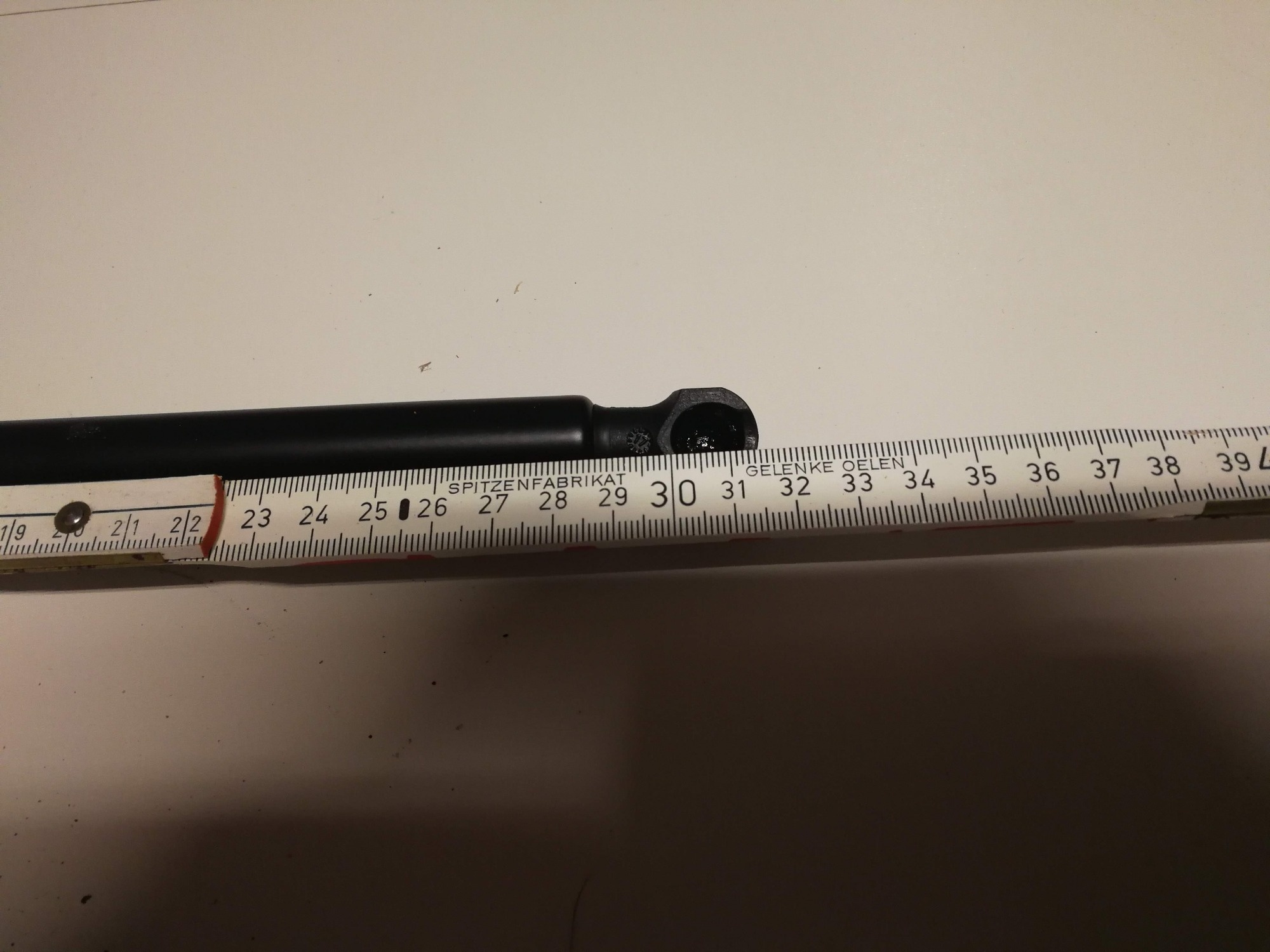 Hub der Stange vom Dämpfer ca.106 mm . ( 130 mm vom Dämpfer bis mitte Kugelkopf.Abzüglich Aufsatz Kugelkopf 20 mm = 110 mm. Strichmarkierung an der Hubstange die nicht ganz eingeschoben wird ca.4 mm 110 - 4 = 106 mm