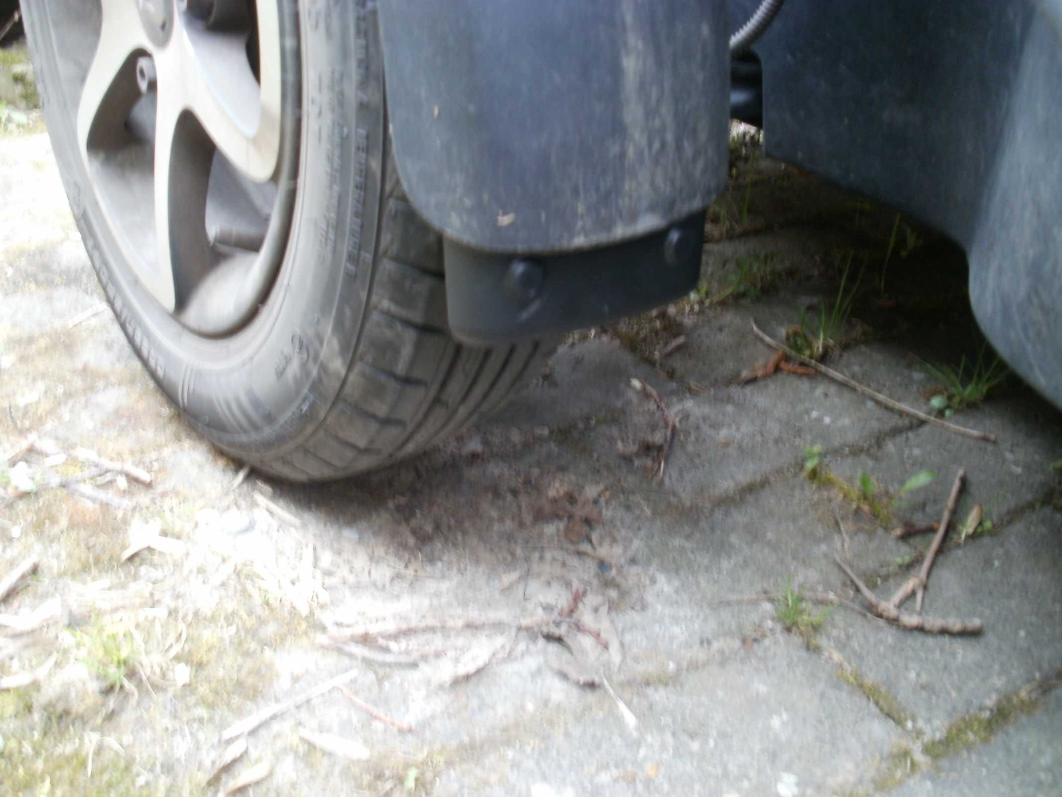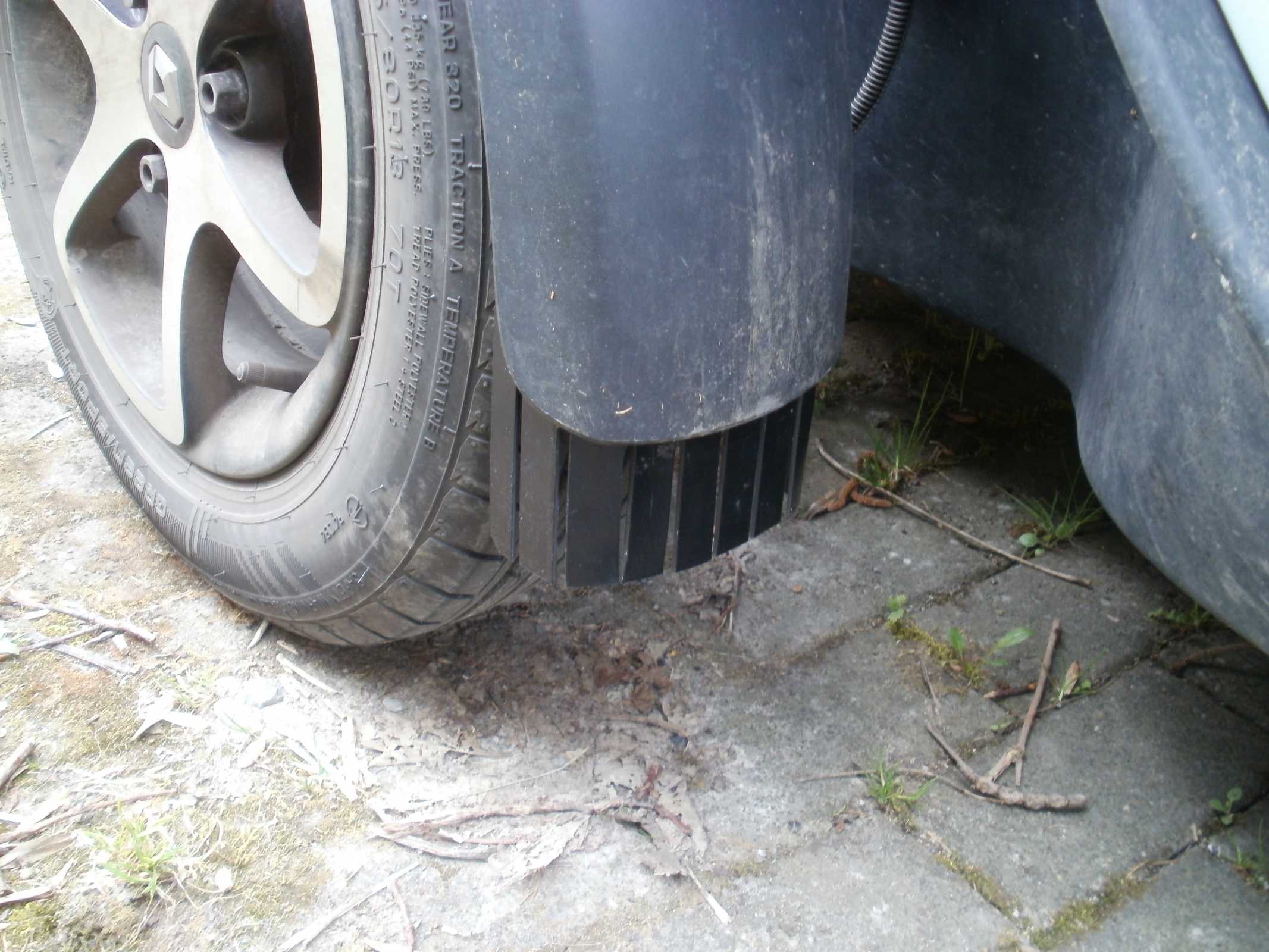 Ich hab deshalb an den vorderen Kotflügelchen jeweils an der Hinterseite einen "Spritzschutzlappen" aus Teichfolie angeklebt.