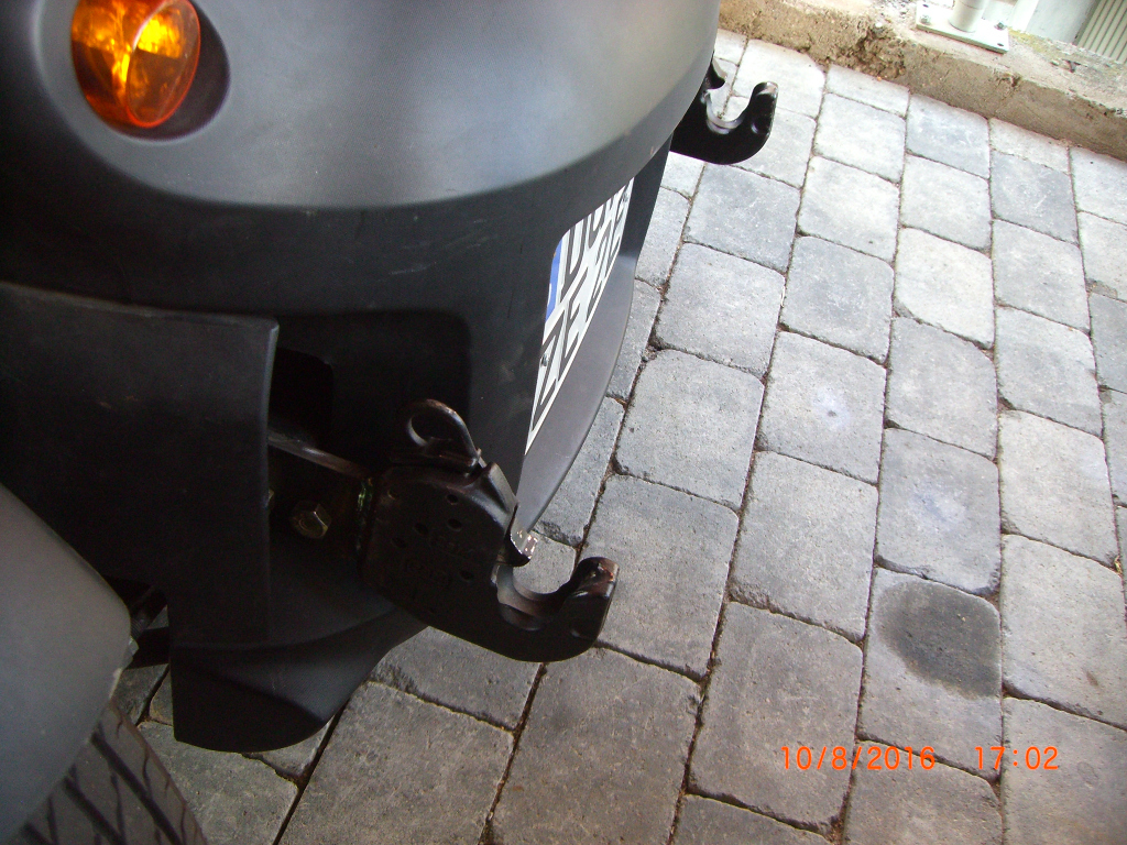 Vermutlich um 2012 gab es eine initiale Diskussion hier im Forum zu einen Anhänger. Ziemlich sicher war es so dass generell ein 1-Rad Anhänger ohne TÜV und Zulassung dran gehängt werden darf. Vorne 2x in die Schnellkupplungs-Unterlenker. Hinten 1 Rad. Die Konstruktion muss aber schwenkbar sein sonst geht das nur geradeaus. ...