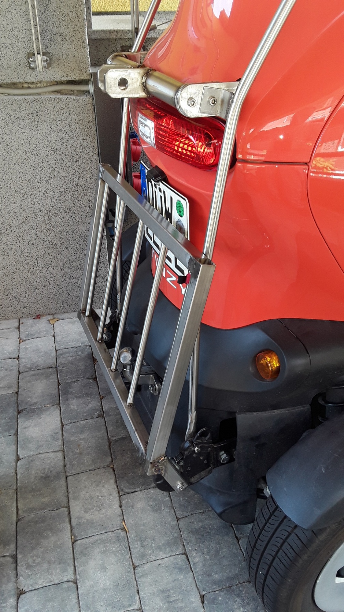 Der Grundträger lässt sich leider nicht einfach so hochklappen, da ist die AHK im Weg ( auch ohne die mittige Strebe...