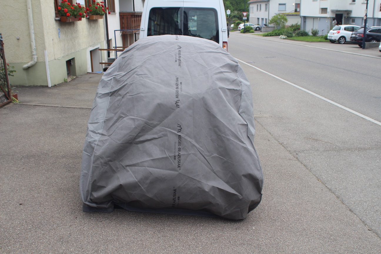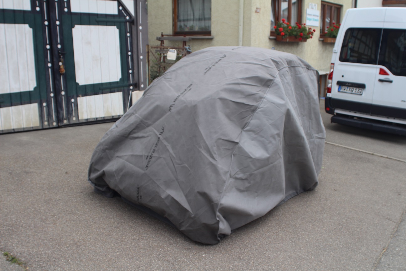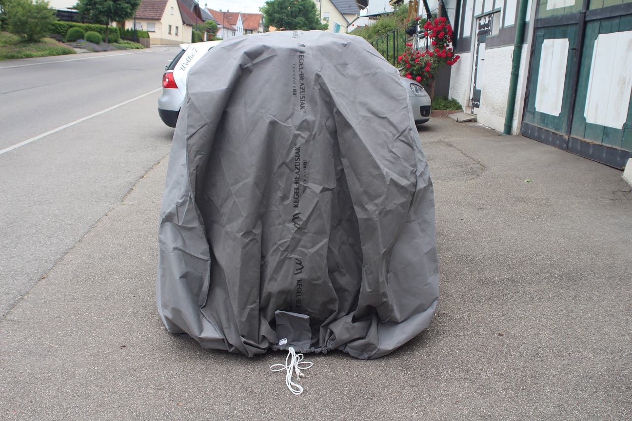 Ich komme mit der Abdeckplane von MiniStromer nicht zurecht. Habe sie einmal auf dem Twizy gehabt, und dann den Winter über das Motorrad meines Bruder damit in der Garage abgedeckt.