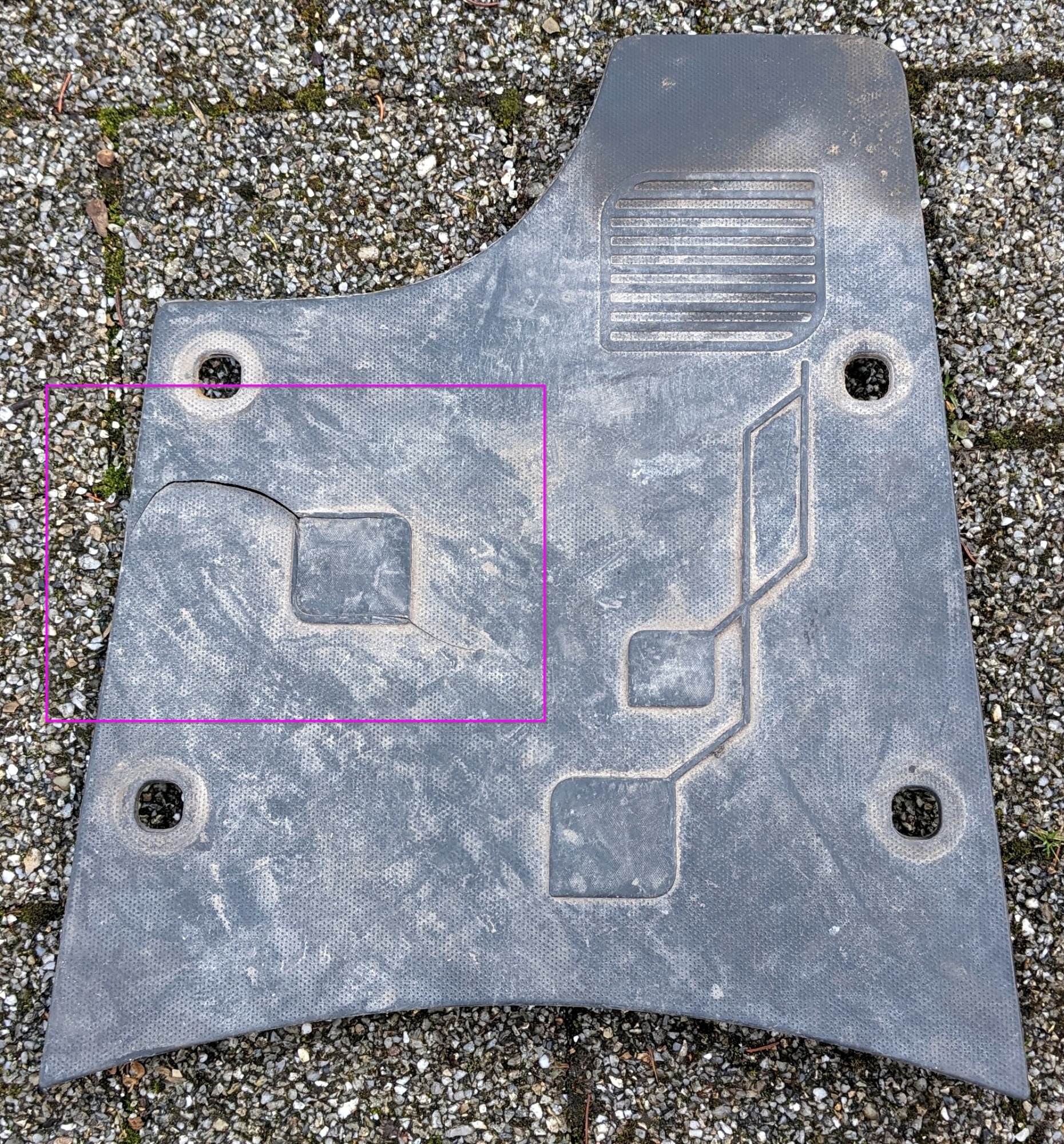 benchy schrieb: Er sucht nicht die Gummimatte/Fußmatte, sondern das Plastikteil darunter.